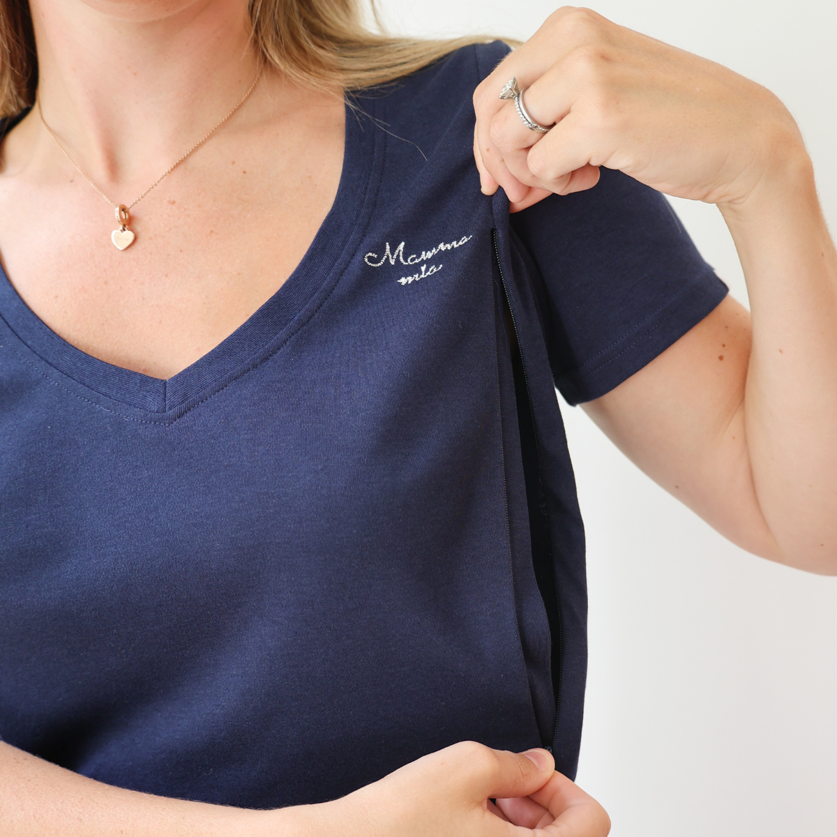 • Fermetures éclair discrètes permettant d'allaiter sans effort, quel que soit l'endroit où l'on se trouve.